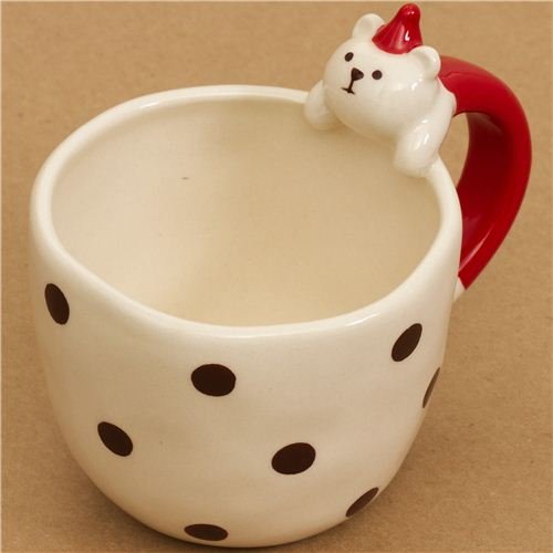 Jolie tasse de Noël à pois avec une poignée avec un ours You can try to find the full description and product details.