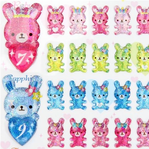 Jolis autocollants kawaii pierres d'anniversaire, lapin .