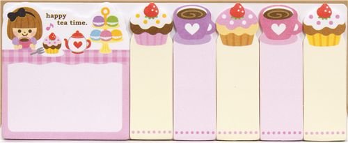 Marque-pages autocollants Post-it, jolis cupcakes et du café