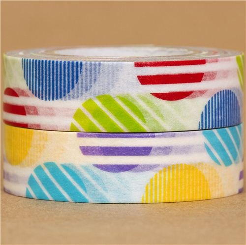 2 rubans de masquage déco en Washi à demi-cercles rayés, mt?Ensemble de rubans de masquage japonais avec des demi-cercles à rayures multicolores