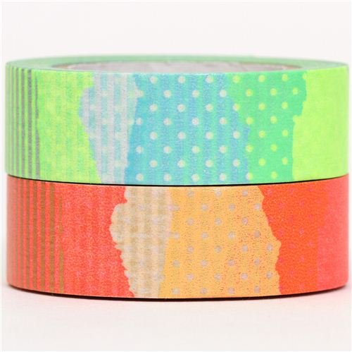 2 rubans de masquage déco en Washi fluo à pois et à rayures