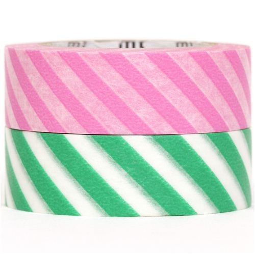 2 rubans de masquage déco en Washi rayés rose et vert, mt