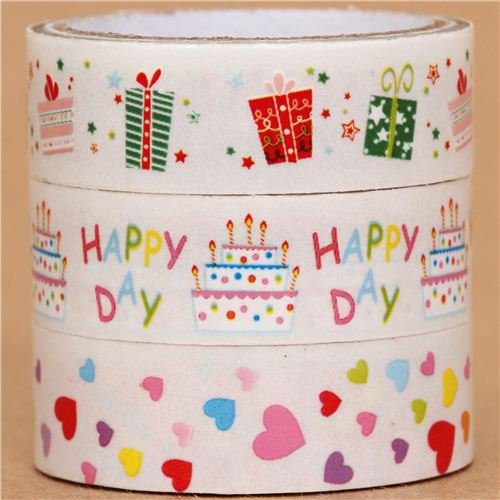 Détails techniques3 rubans adhésifs décoratifs transparents avec des cadeaux multicolores, des gâteaux, des coeurs, etc ...par Prime Nakamura, importé du Japon, très bonne qualité, super mignoncomprend un coupe-rubandimensions par rouleau : longueur : 5 m, largeur : 1,5 cmidéal pour compléter votre collection, comme décoration & pour récompenser les bons élèves, superbe aussi pour décorer les meubles et les accessoires 3 rubans adhésifs transparent, anniversaire, coeurs, cadeaux?