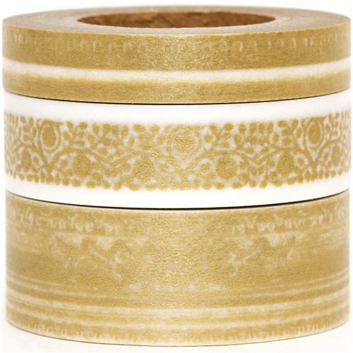 3 rubans de masquage déco en Washi à motifs à fleurs?3 rubans adhésifs en Washi dorés de tailles différentes avec des motifs différents, importé du Japon