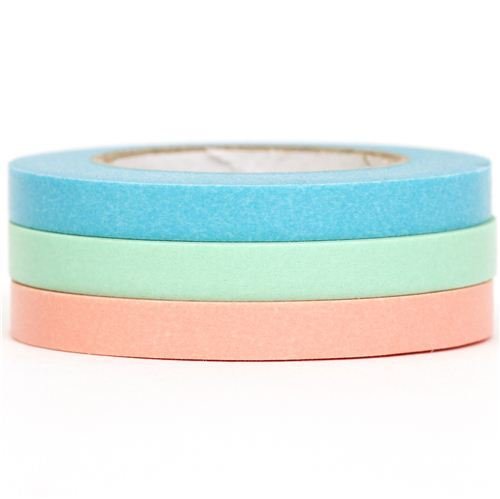 3 rubans de masquage déco étroits Washi sarcelle saumon vert?Ensemble de 3 rubans adhésifs étroits en Washi, par mt, bleu sarcelle, vert menthe et saumon