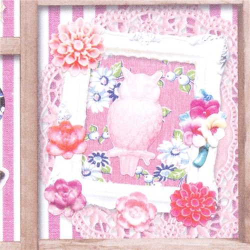 Autocollants avec hibou, écureuil & oiseau - rose