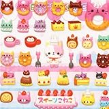 | ✚✚✚ Autocollants bombés spongieux chat, beignets, macarons Autocollants 3D avec des macarons, des beignets, des cornets de glace, un gâteau, du pudding, etc ... en forme de chats