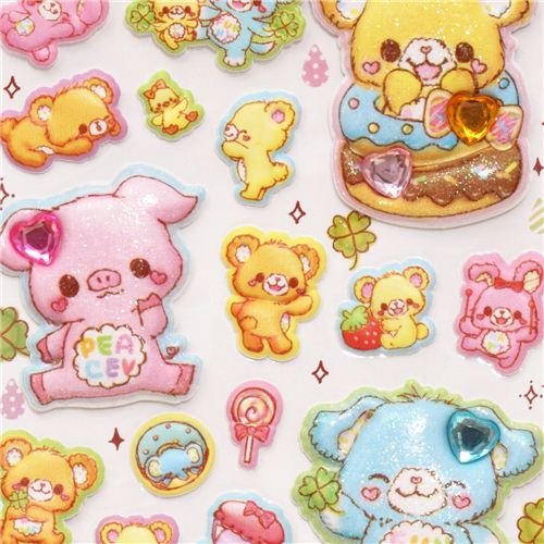 #Autocollants 3D épais avec des ours, des cochons, des lapins, des trèfles, des bonbons & des strass