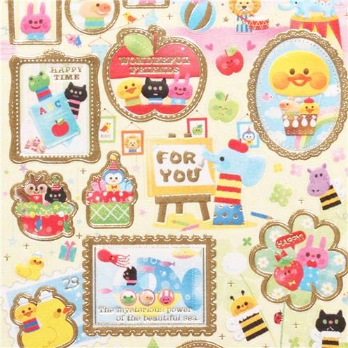 Détails techniquesravissants autocollants avec des marionnettes, des cadres, un canard, un livre, un piano, des pommes, etc ... avec des décorations doréespar Kamio, importé du Japontaille de la planche d'autocollants : hauteur : 18 cm, largeur : 9 cmtrès bonne qualité, super mignonà collectionner, à échanger, idéal pour la décoration & pour récompenser les bons élèves Autocollants japonais kawaii Meilleurs Amis,animaux & photos?