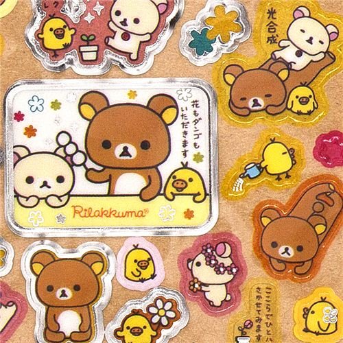 Autocollants kawaii ours Rilakkuma et des fleurs, San-X?Jolis autocollants japonais avec un poussin, un ours brun et un ours blanc, et des fleurs, etc ...