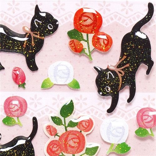 Autocollants époxy kawaii à paillettes chats & roses