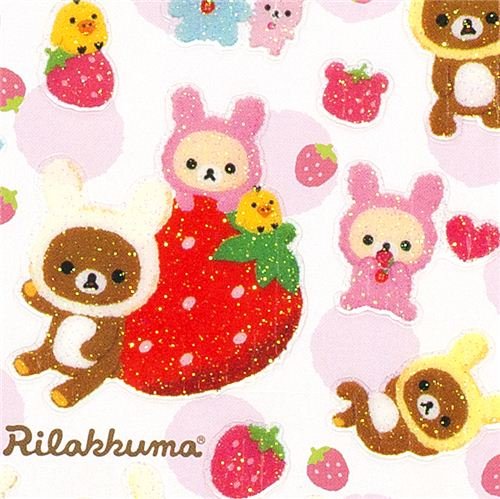 Autocollants paillettes ours Rilakkuma en lapin fraise