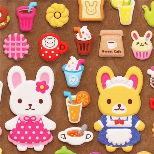 Autocollants spongieux kawaii avec des lapins & du café