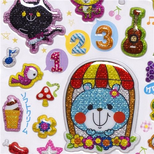Autocollants spongieux à paillettes, ours, chat, hibou