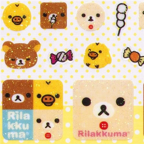 Autocollants visages ours Rilakkuma à paillette, crêpes